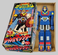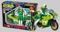 (comment) The moonlight mask is made of 3 parts of Sofubi. The tip of the gun is well-shaped with soft-shells. The manufacturer logo of Masudaya is printed on the bell. A certificate is attached to the side of the tricycle. The front wheels move left and right, so you can change the direction. The same tricycle was used for many characters such as Great Mazinger, Curtan, Silver Mask, and Kamen Rider X. The Rainbow Man tricycle exhibited this time is the same tricycle, except that it comes with a large light blue cowl. Since it can be displayed in the same size, it is a series that many people collect beyond characters (Koshizaki)
